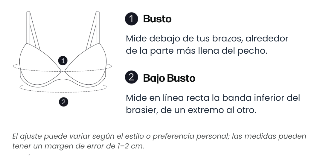 | Talla | US/MX | Bajo busto (cm) | Bajo busto (in) |